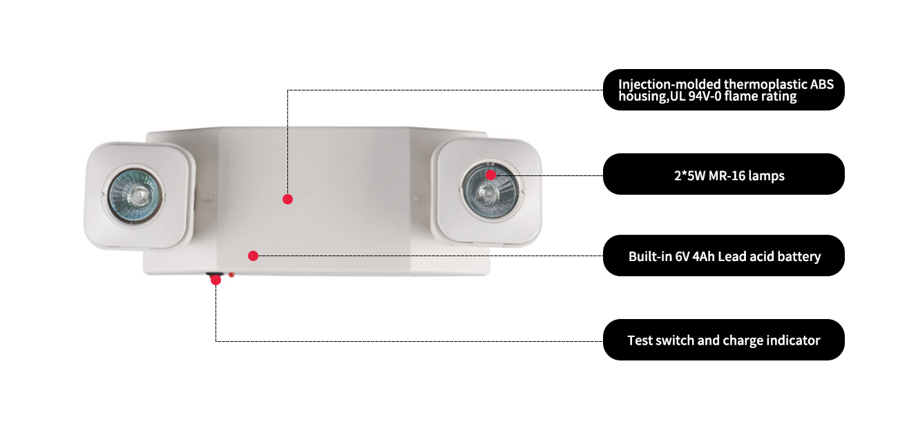 Áit / Toradh / Solas éigeandála / Solas éigeandála dé -cheann / Jeu2 2x5w MR-16 Lampa Éigeandála