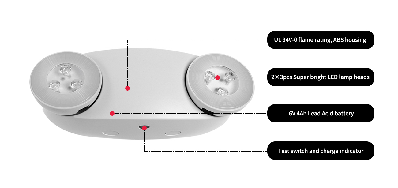 Áit / Toradh / Solas éigeandála / Solas éigeandála dé -cheann / Jleu6 UL/CUL 600lm Aschuir Ard -Aschuir Solas Éigeandála