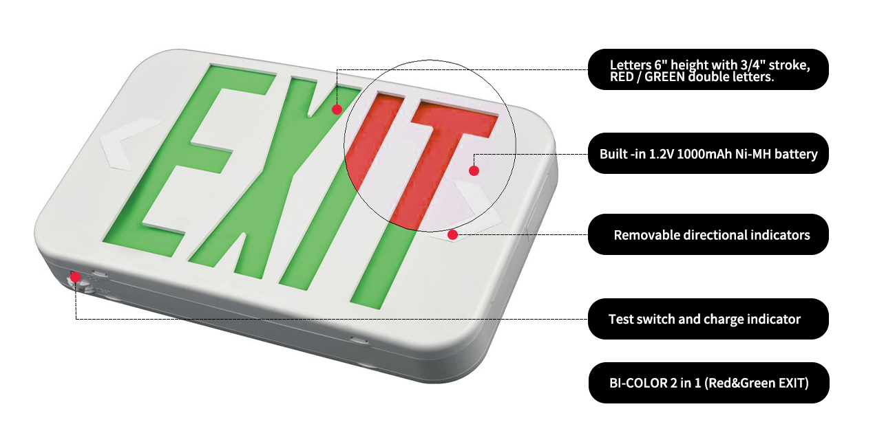 *Cúltaca Ceallraí Cumhachta Éigeandála-Tá an comhartha scoir LED deartha le ceallraí saor ó chothabháil 1.2V 1000Mah Ni-CAD a sholáthraíonn íosmhéid éigeandála 90 nóiméad. Is é 24 uair an chloig an t -am athmhuirearaithe den cheallra.
