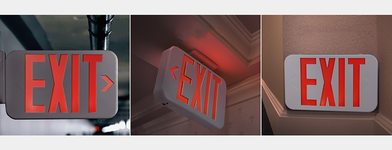 Is féidir saighead ar chlé agus ar dheis a leagan amach as an bpláta aghaidh chun an treo imeachta a chur in iúl. Ceadaíonn lúibín gléasta uilíoch gléasadh éasca ón mbarr nó ó na taobhanna. Déantar an comhartha scoir seo a réamh-chóimeáil agus seoltar taobh le taobh amháin le faceplate imeachta breise atá san áireamh sa bhosca le haghaidh tionól láimhe roghnach.