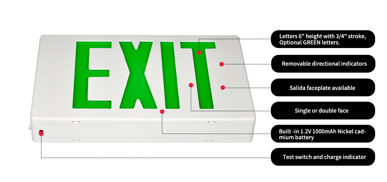 *Cúltaca Ceallraí Cumhachta Éigeandála-Tá an comhartha scoir LED deartha le ceallraí saor ó chothabháil 1.2V 1000Mah Ni-CAD a sholáthraíonn íosmhéid éigeandála 90 nóiméad. Is é 24 uair an chloig an t -am athmhuirearaithe den cheallra.