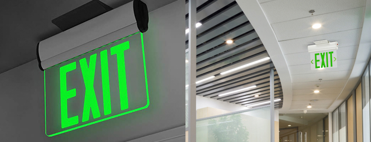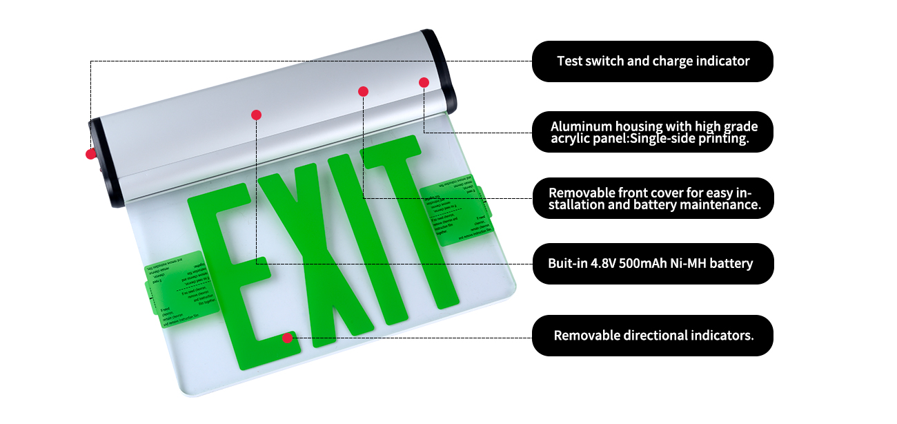 An comhartha scoir deiridh i ndearadh agus i solúbthacht. Réiteoidh an comhartha imeachta imeall faoi stiúir glas seo beagnach aon fhadhb chumraíochta atá ag dul i méid.  Ceadaíonn an stíl amháin seo suiteáil uasteorainn, taobh, agus ballaí balla.  Tá an painéal Lit Edge tógtha as aicrileach ardghráid le saigheada treo saincheaptha chun dul i dtreo treo imeachta. Déanann an clúdach tosaigh inbhainte suiteáil agus cothabháil saor ó thinneas cinn!