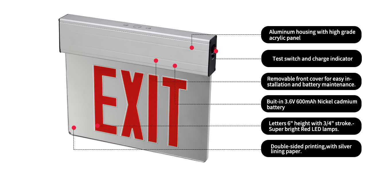 An comhartha scoir deiridh i ndearadh agus i solúbthacht. Réiteoidh an comhartha imeachta lit imeall faoi stiúir dearg seo beagnach aon fhadhb chumraíochta gléasta.  Ceadaíonn an stíl amháin seo suiteáil uasteorainn, taobh, agus ballaí balla.  Tá an painéal Lit Edge tógtha as aicrileach ardghráid le saigheada treo saincheaptha chun dul i dtreo treo imeachta. Déanann an clúdach tosaigh inbhainte suiteáil agus cothabháil saor ó thinneas cinn!