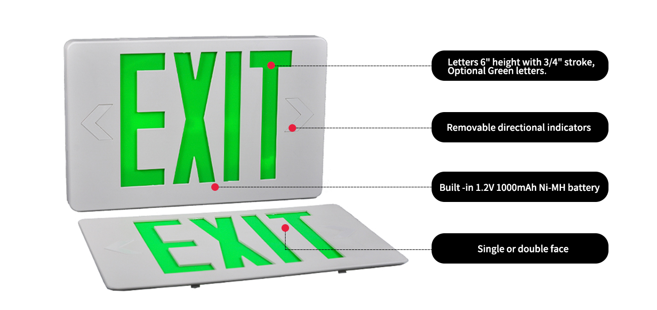 Áit / Toradh / Comhartha éanas / Solas fágála / Jleed2Gwem-ultra comhartha imeachta éigeandála glas geal geal