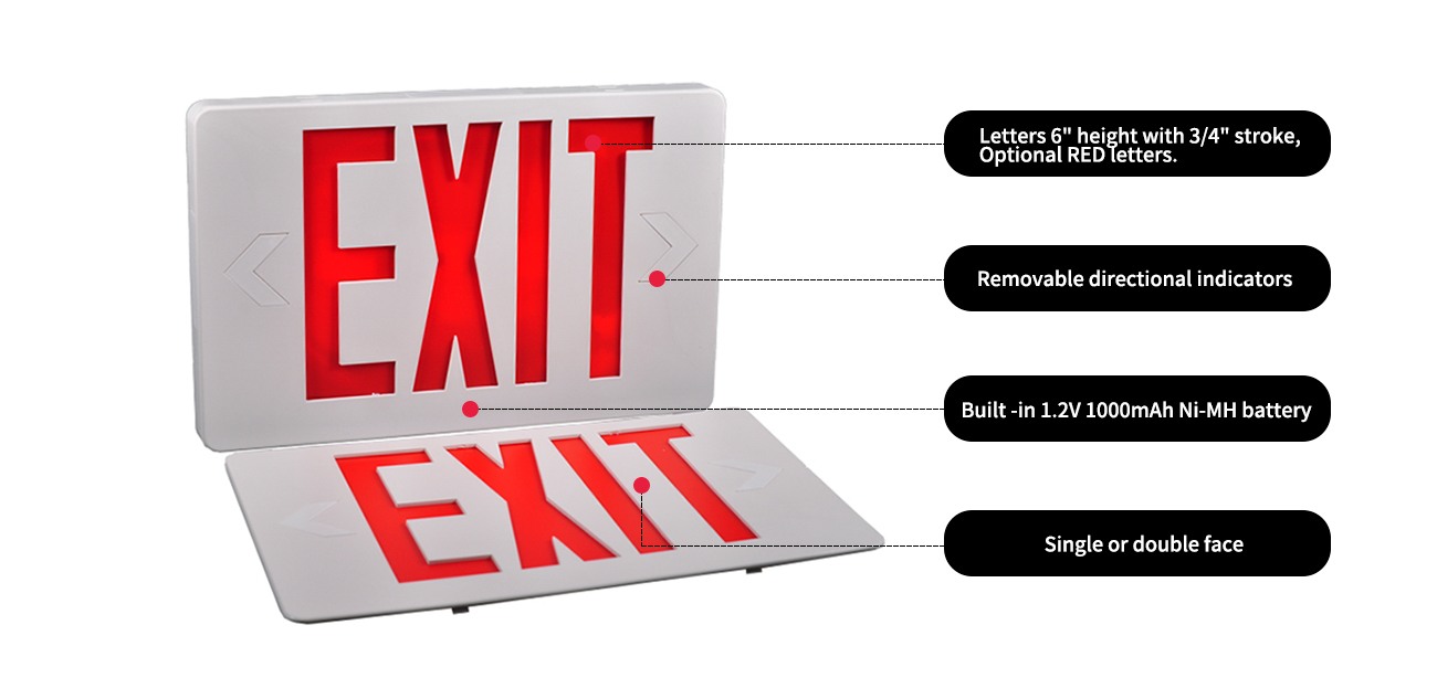 2019 Sraith Nua Slim 6 orlach Múnla Exit Signs Signs Sraith JEE (Litreacha Dearga)