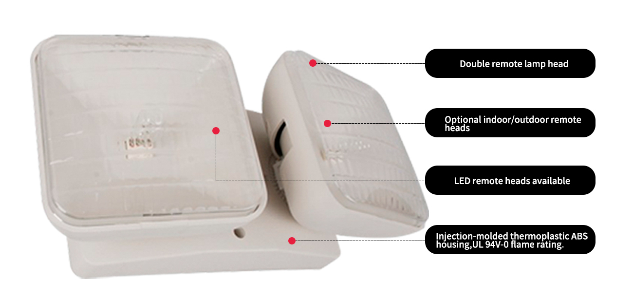 Áit / Toradh / Solas éigeandála / Ceann cianda solais éigeandála faoi stiúir / JRH-2-UL 94V-0 Rátáil lasair Cinn Lampaí Cianda Dúbailte