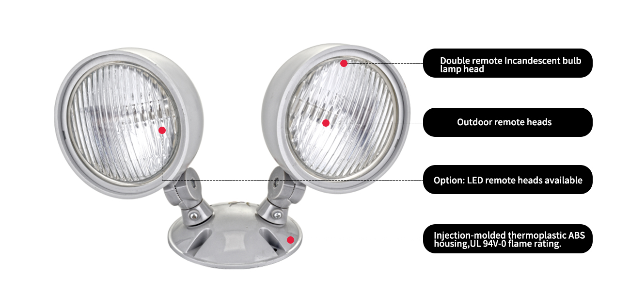 Áit / Toradh / Solas éigeandála / Ceann cianda solais éigeandála faoi stiúir / JRHWP-2-Outdoor Dúbailte Dúbailte Cinn Lampa Bulbent