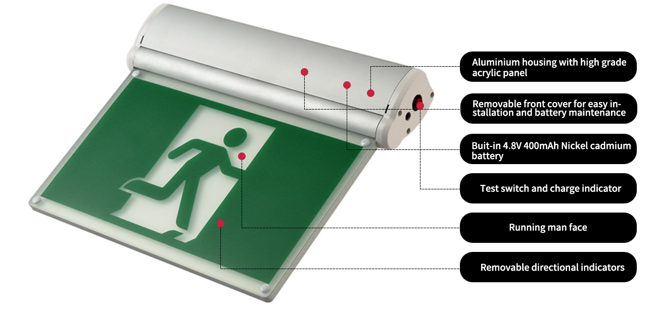 *BUIT-IN 4.8V 400MAH Ceallraí Caidmiam Nicil le haghaidh oibríocht éigeandála 90 nóiméad ar a laghad.